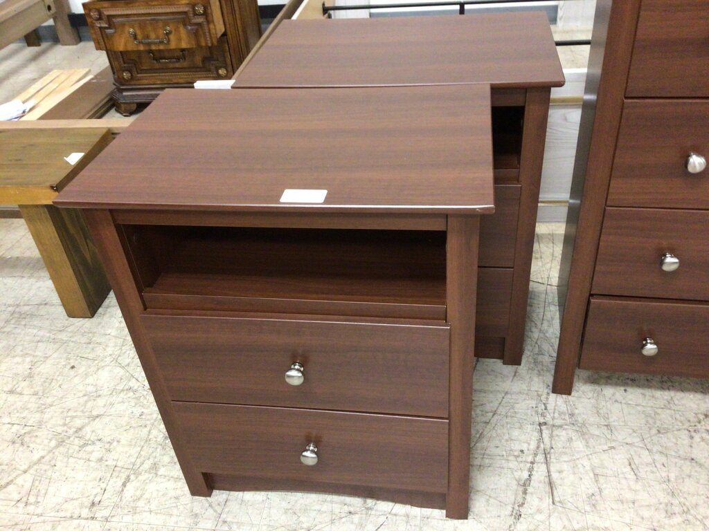 S/2 Dk Wood Nightstands-2 Drawer/1 Cubby