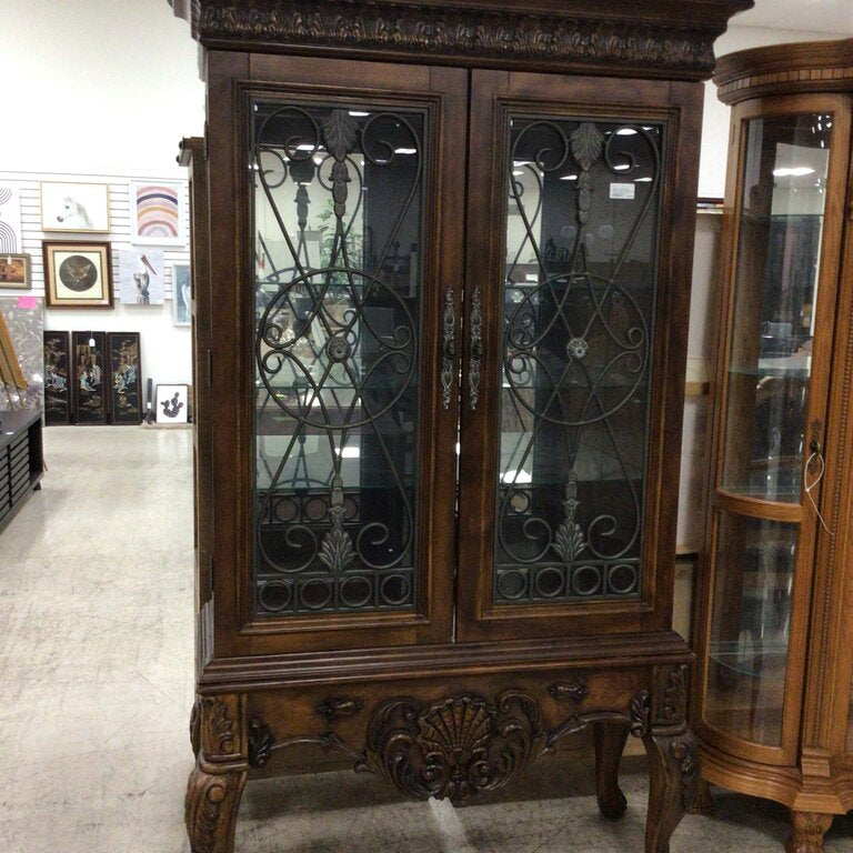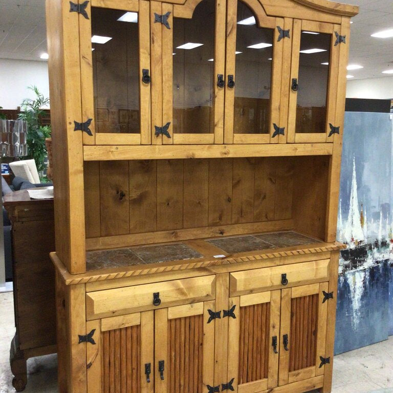 2PC Hutch 2 Doors Mtl Scroll Detail
