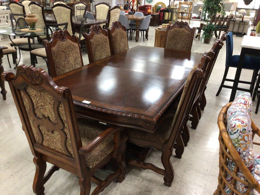 Ornate Wood Dining Table 1-leaf 8 Chairs