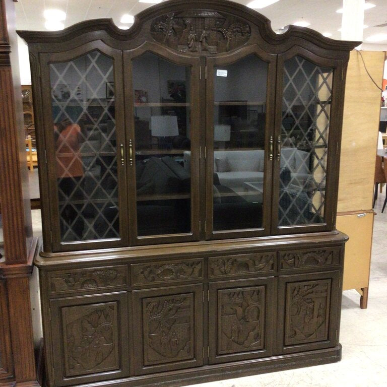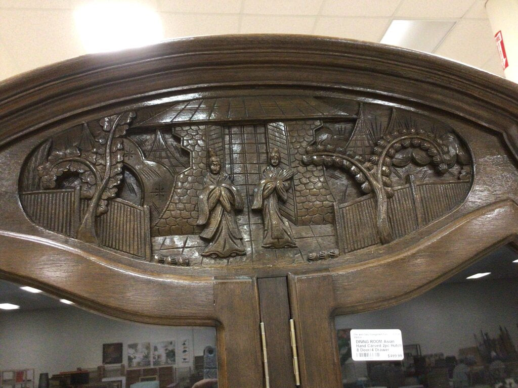 Asian Hand Carved 2pc Hutch