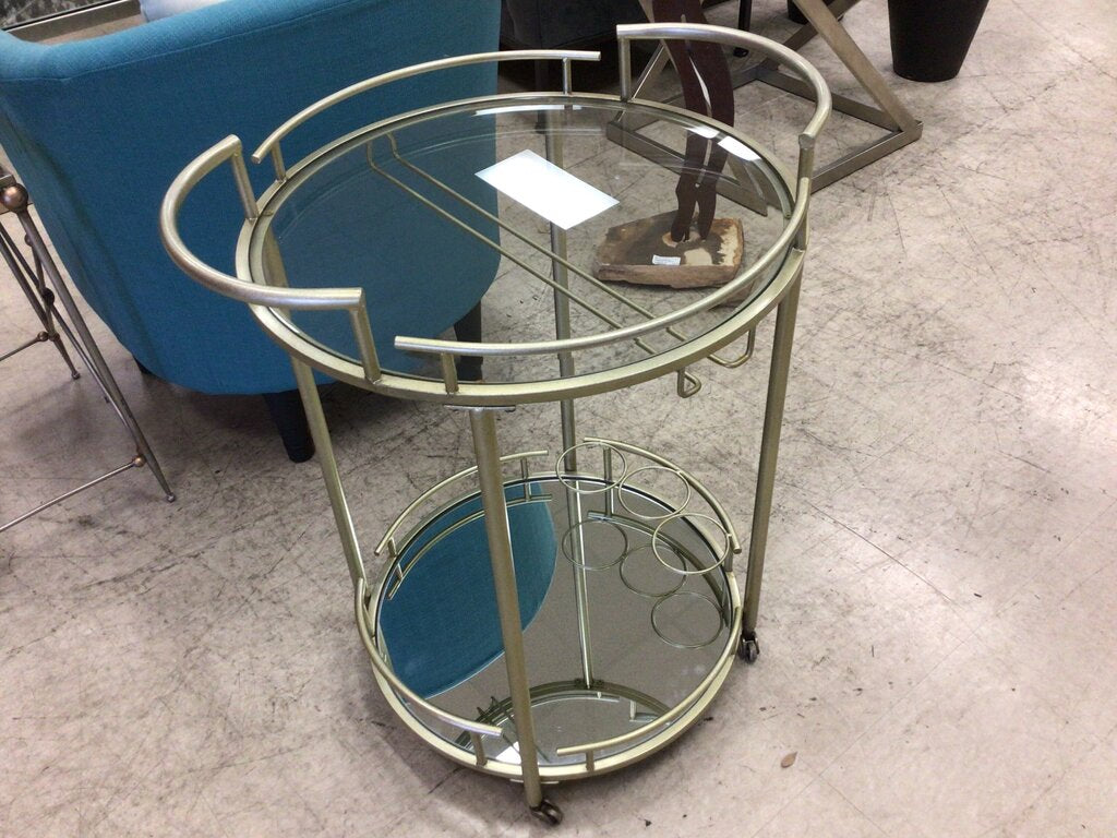 Brushed Gold Rolling 2 Tier Bar Cart
