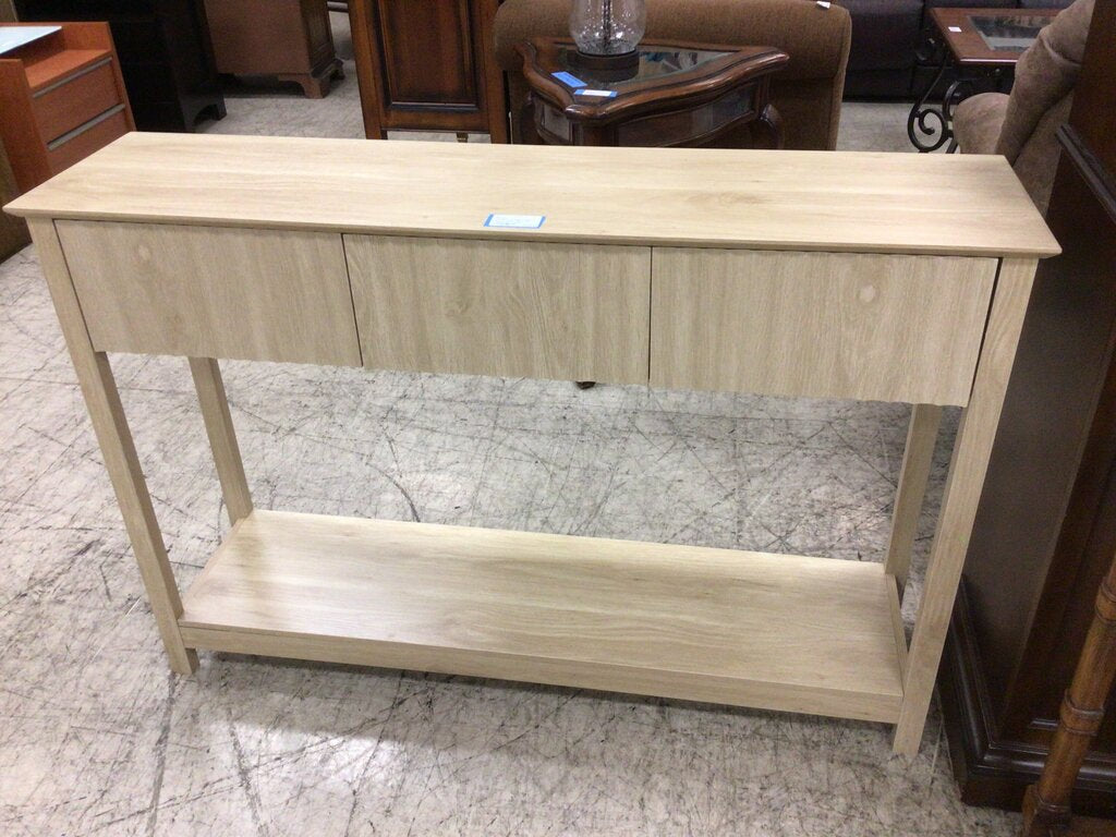 Fluted Lt Wood 3 Drawer Console