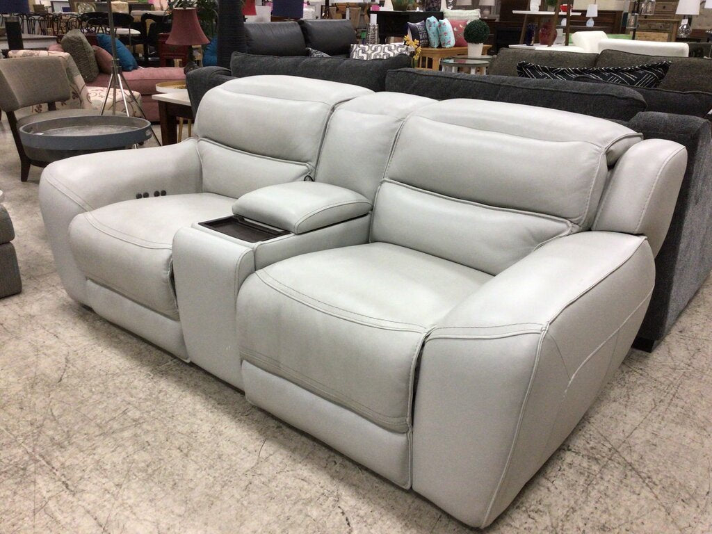 2-seat Lt Gray Dual Recline Leather Loveseat
