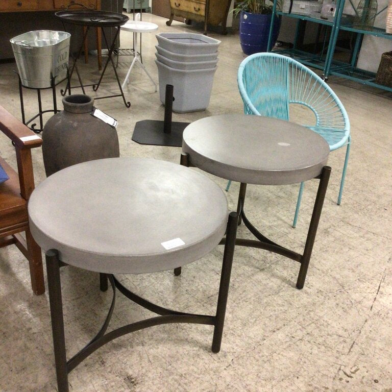 S/2 Stone Top End Tables Round Top