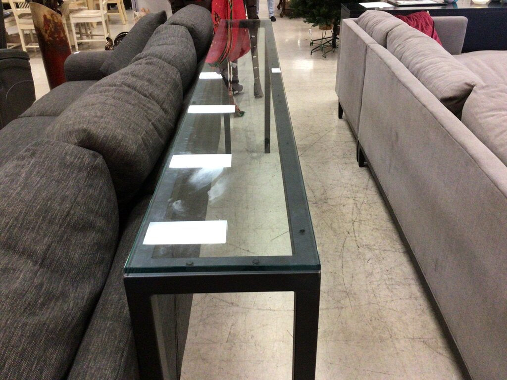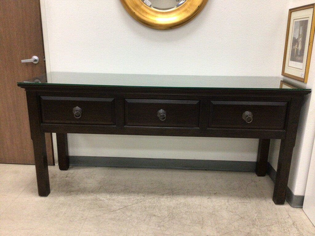 Long Espresso Entry Table w/3 Drawers & Glass Top