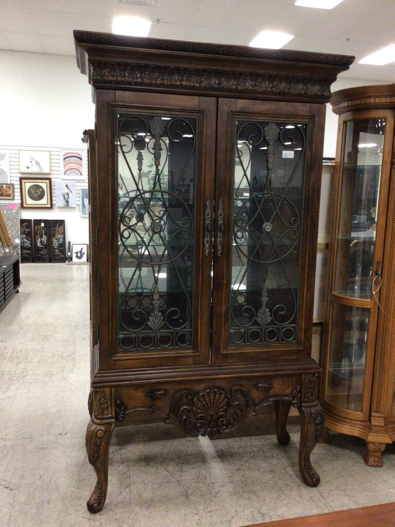 2PC Hutch 2 Doors Mtl Scroll Detail