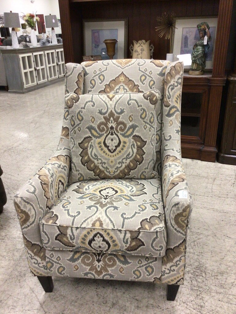 Brown/ Beige Patterned Chair W/ Pillow