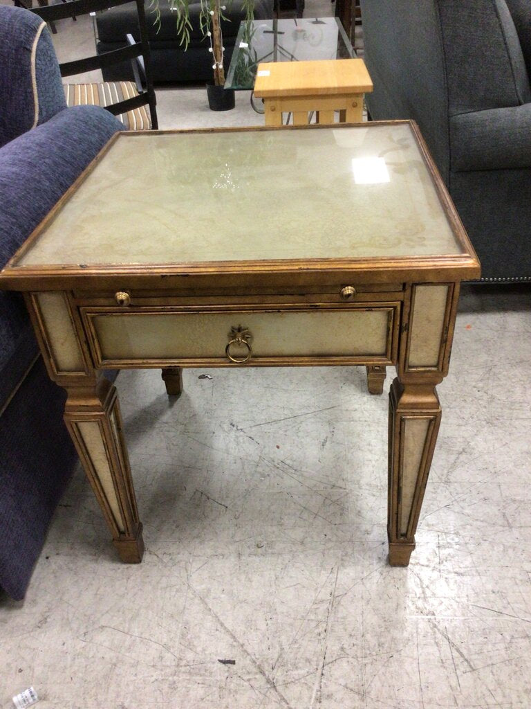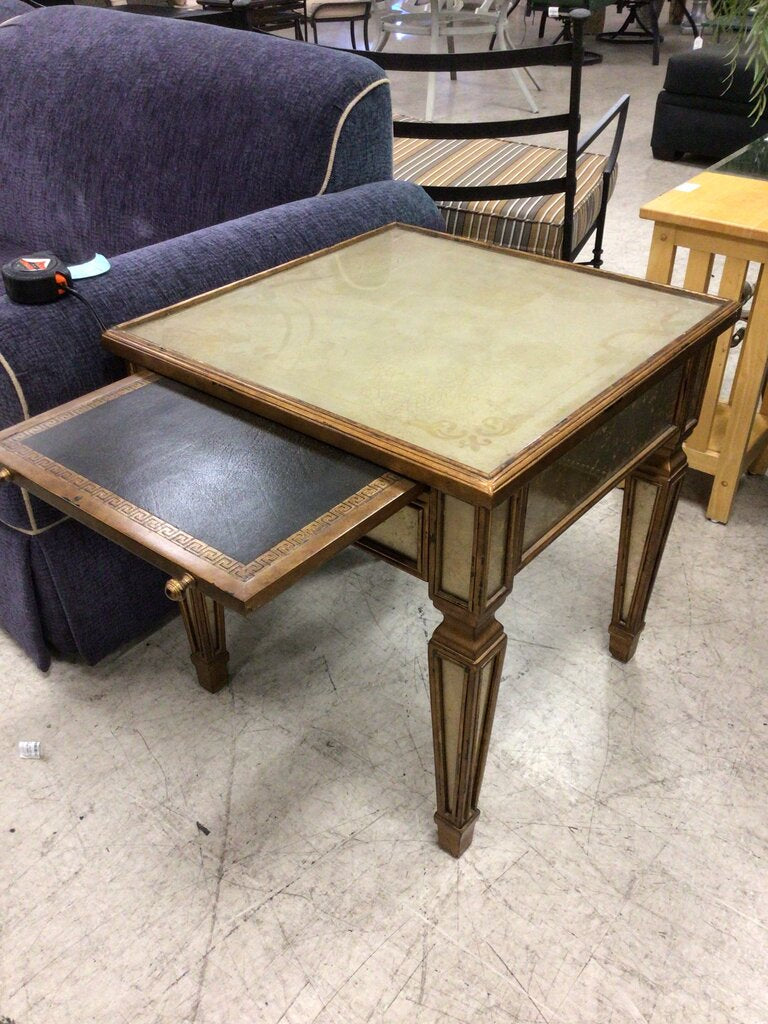 Crackle Mirrored Gold End Table W/ Tray