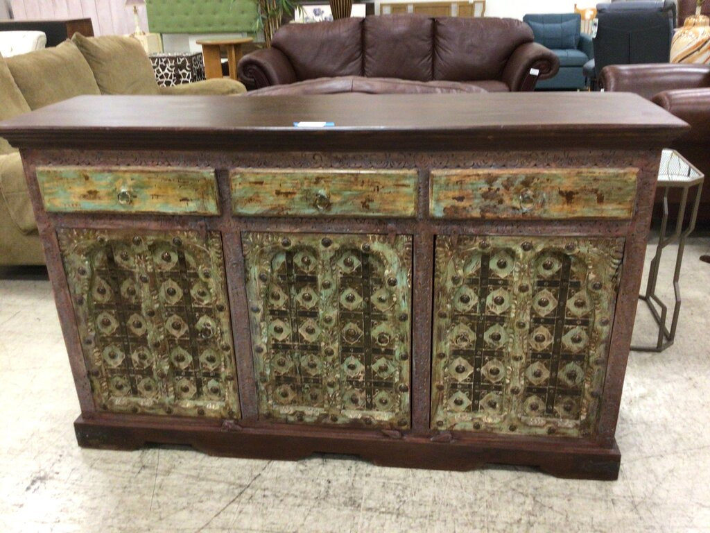 Distressed Wood Console-Green Accent