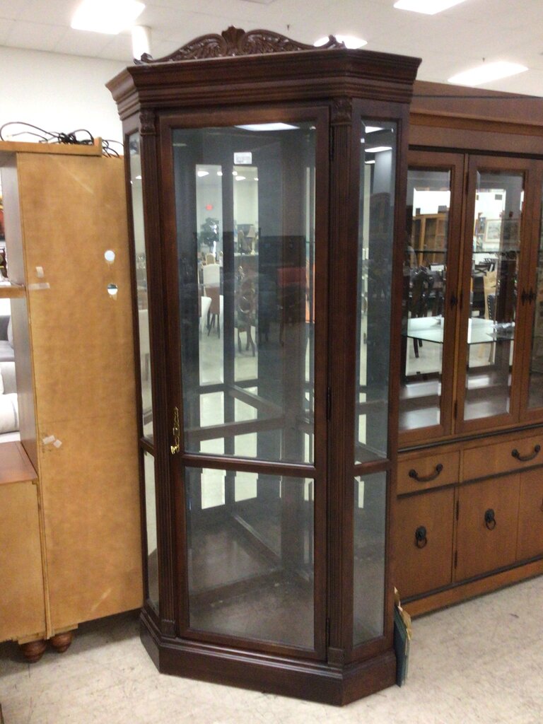 Dk Wood Corner Curio w/ Glass Shelves