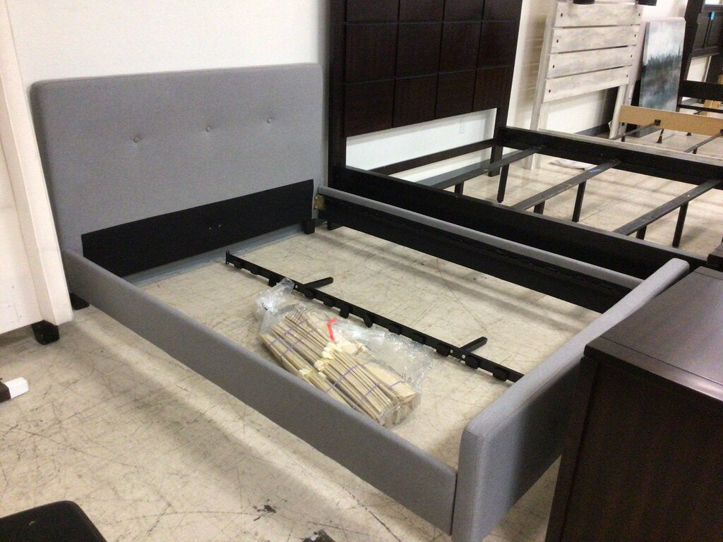 Gray Fabric Queen Bedframe W/ Slats