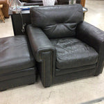 Gray Leather Arm Chaie+Ottoman
