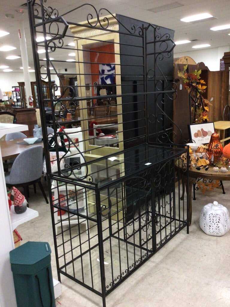 Large Black Metal Glass Baker's Rack