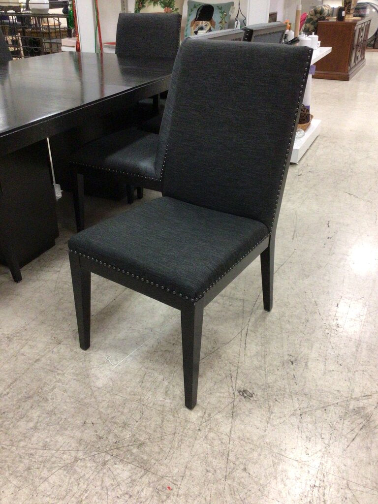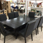 Lexington Black Wood Dining Table w/ Leaf & 8 Studded Chairs