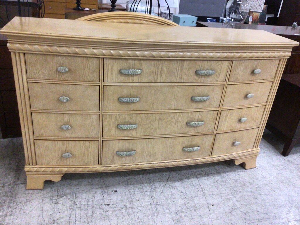 Lg Lt Wood 12-dwr Dresser w/ Mirror