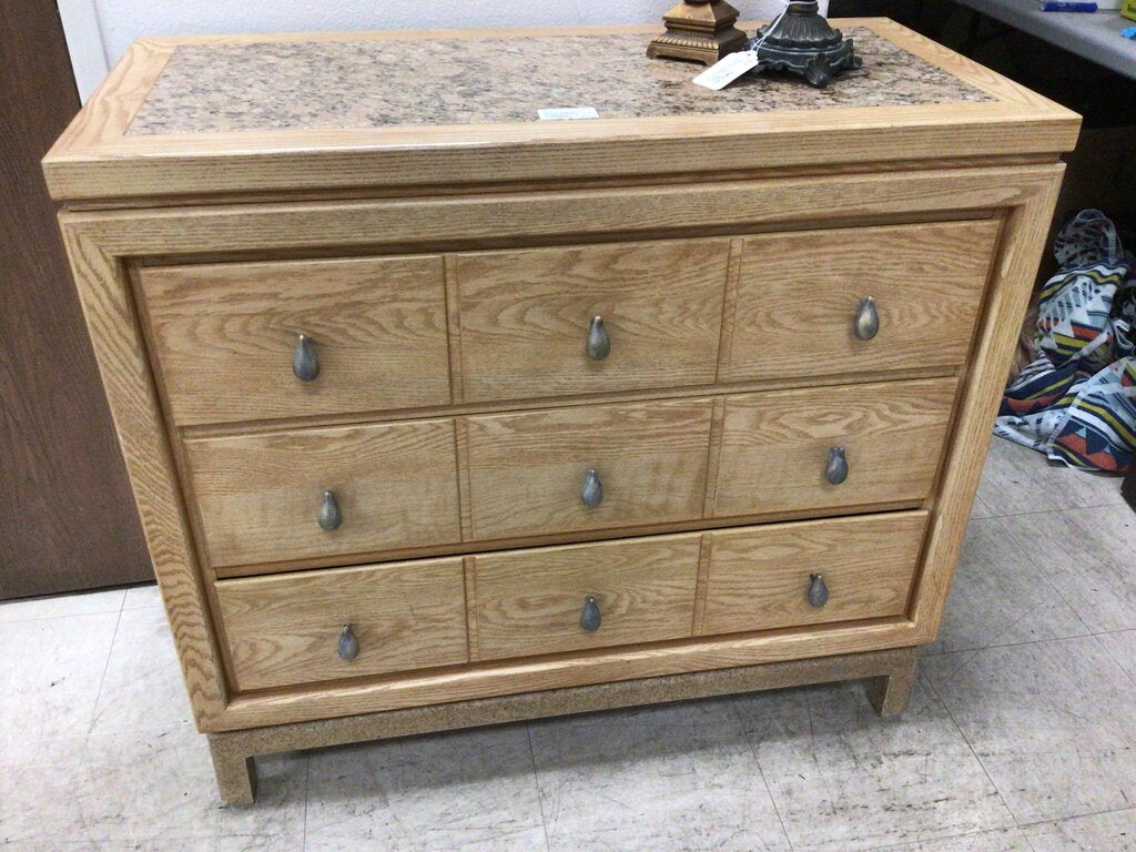 Lt. Wood 3 Drawer Chest W/Granite Top