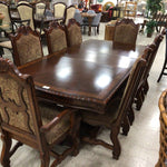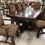 Ornate Wood Dining Table 1-leaf 8 Chairs