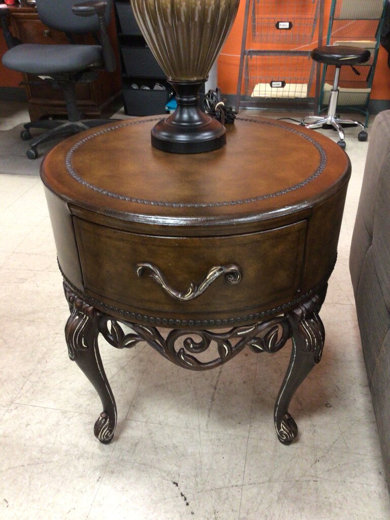 Round Side Table 1 Dwr Scroll Base