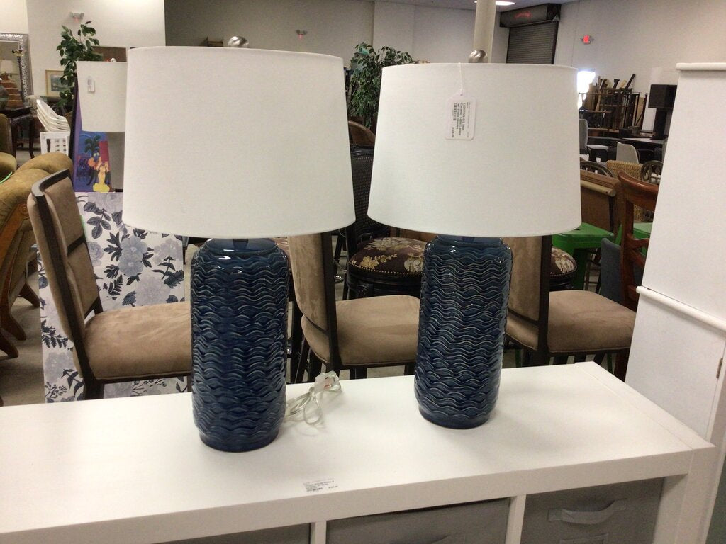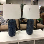 S/2 Blue Ceramic Table Lamps w/ White Shades