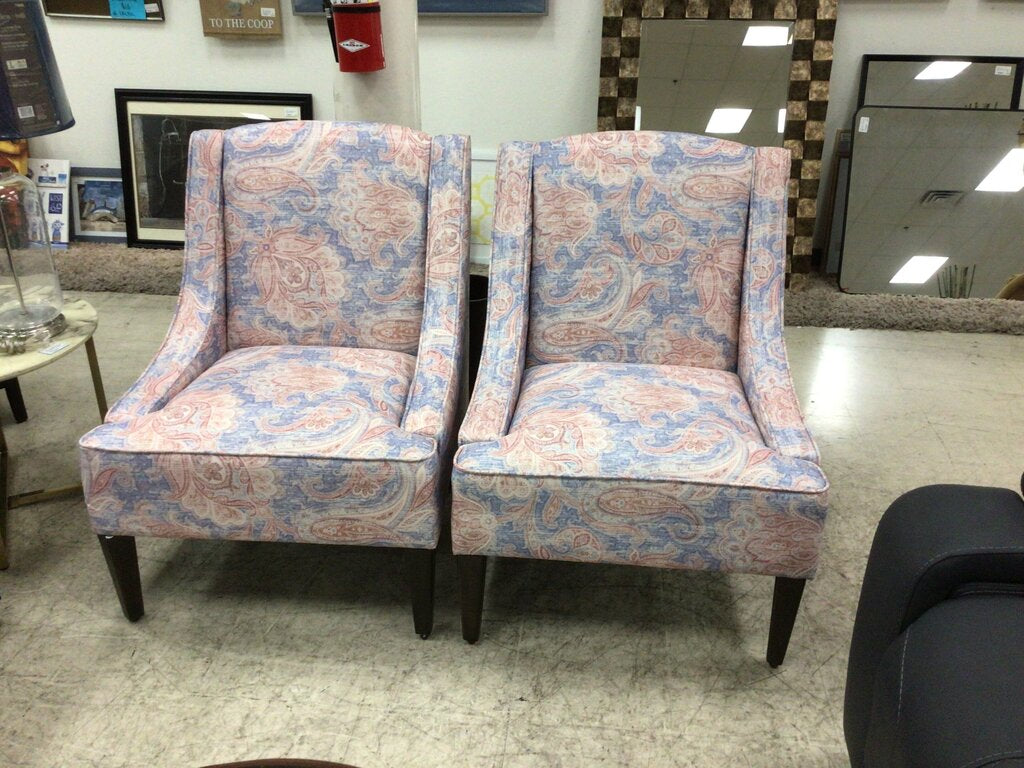 S/2 Fabric Paisley Chairs