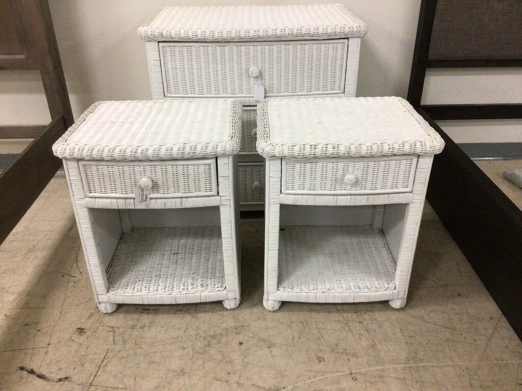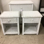 S/2 White Wicker Nightstands w/ dwr