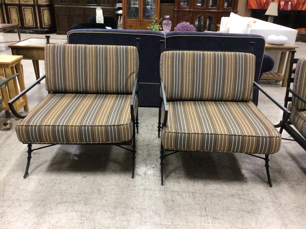 S/2 Wrght Iron Chairs W/ Striped Cushions