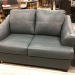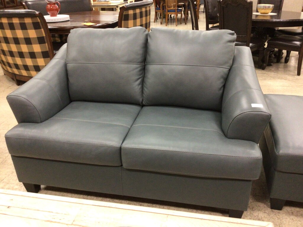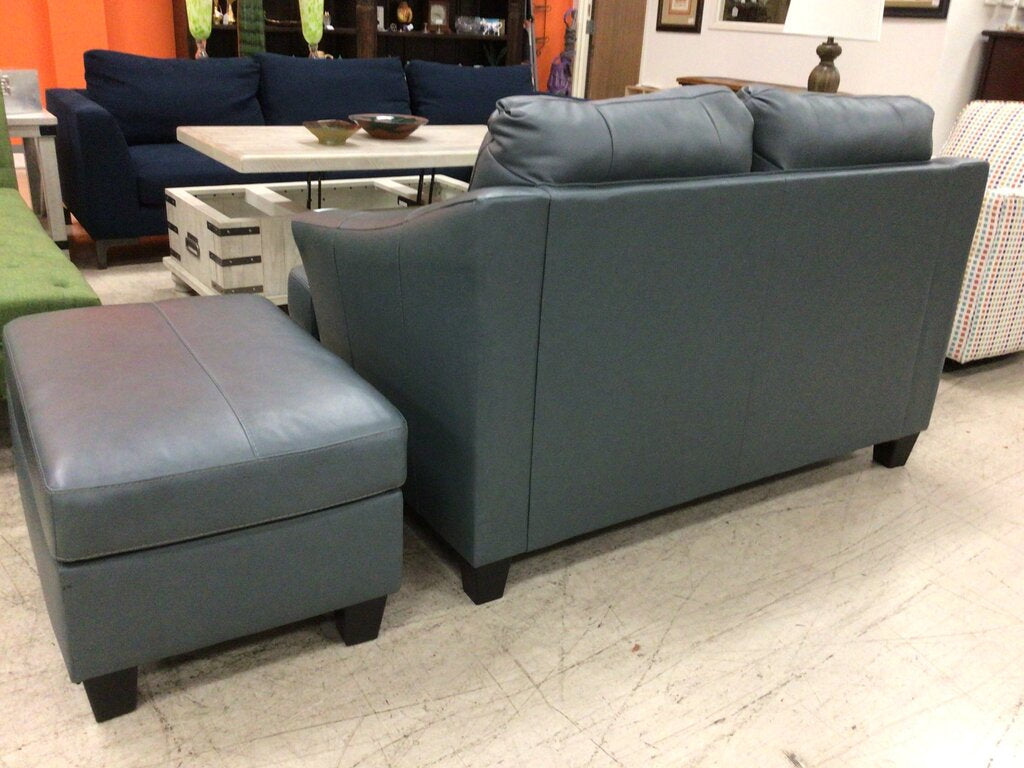 Slate Faux Leather Loveseat W/ Ottoman