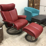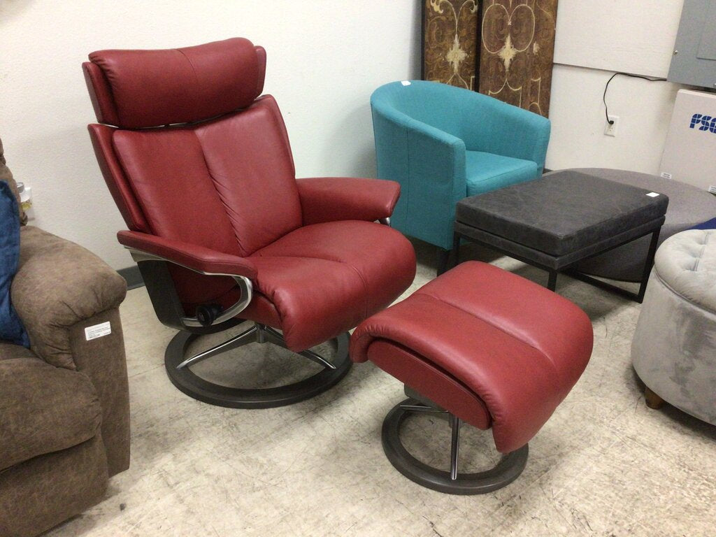 Stressless Ekornes Red Leather Recliner & Ottoman