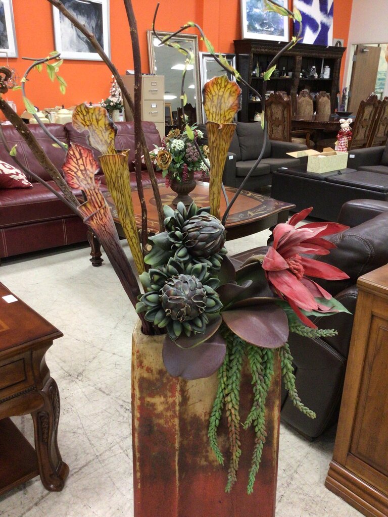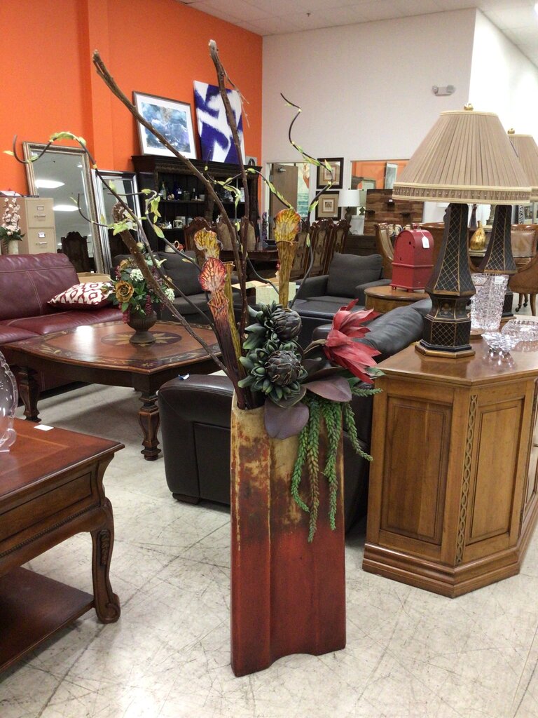 Tall Red/Natural Wood Vase W/ Faux Flwrs