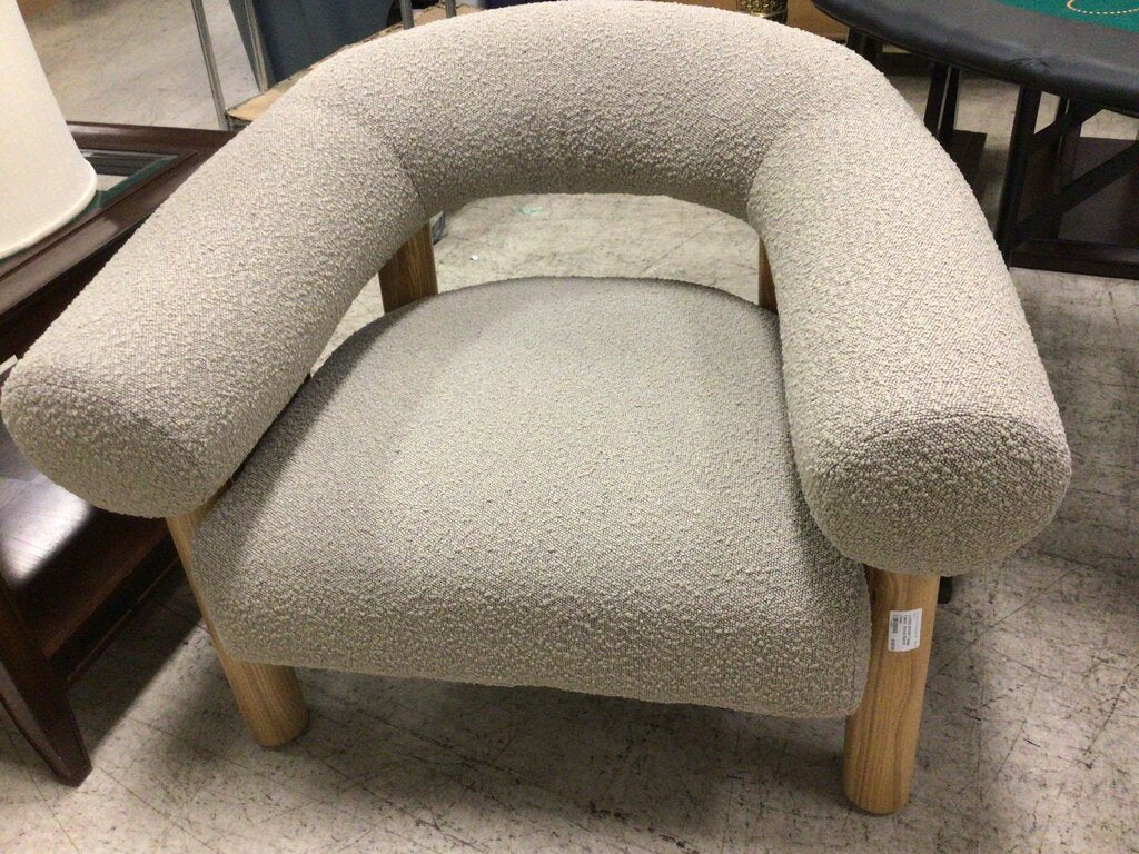 Taupe Fabric Wood Barrel Chair