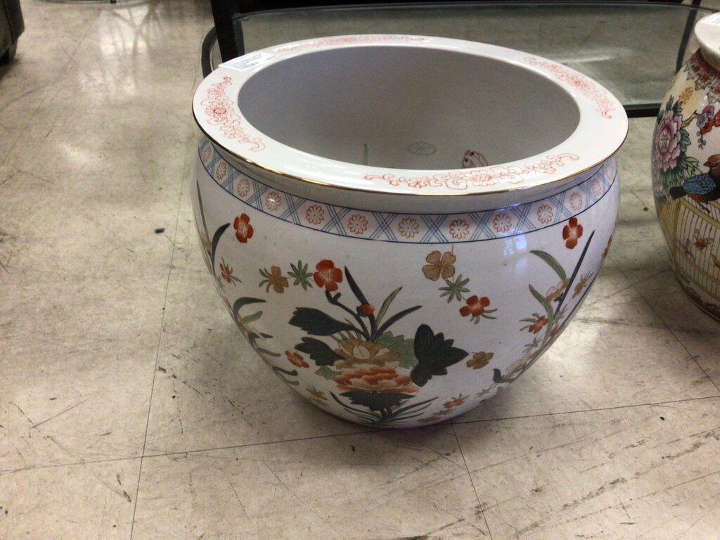 White Coi Pot w/ Orange Flowers