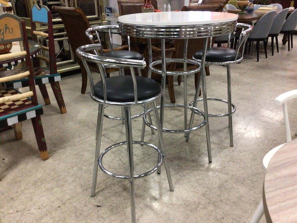 White Pub Table w/ 3 Stools