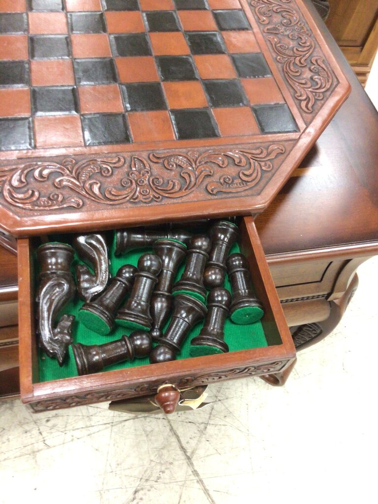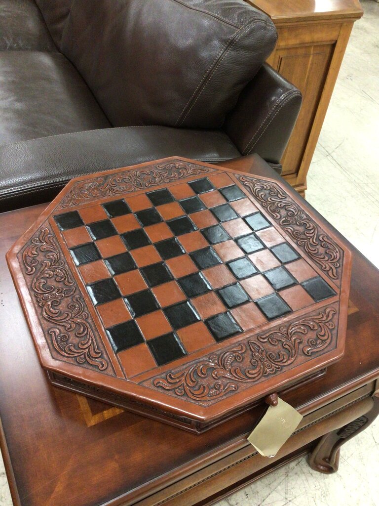 Wood Leather Chess Set Colonial Octagon